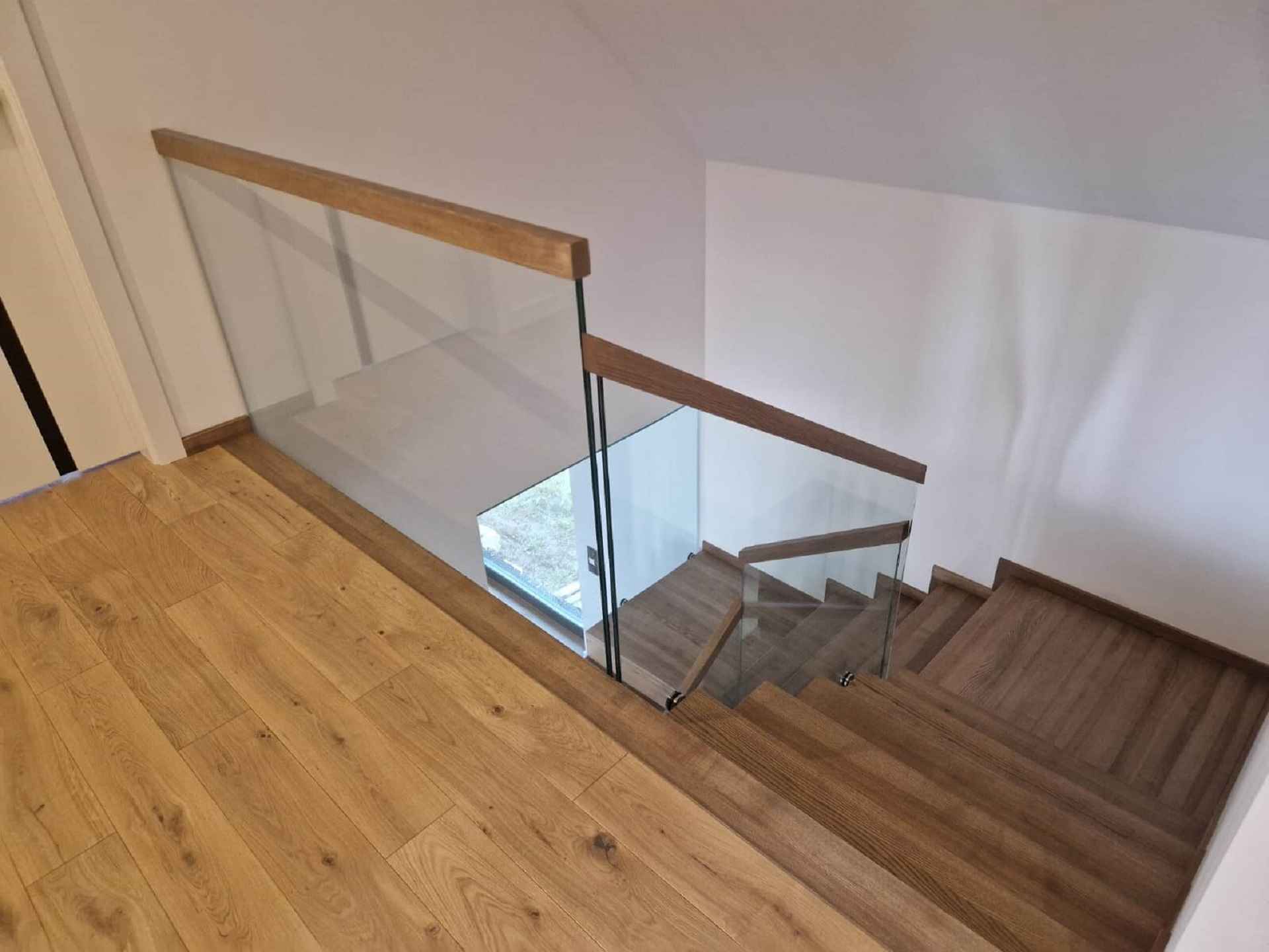 Holztreppe mit Glasgeländer
